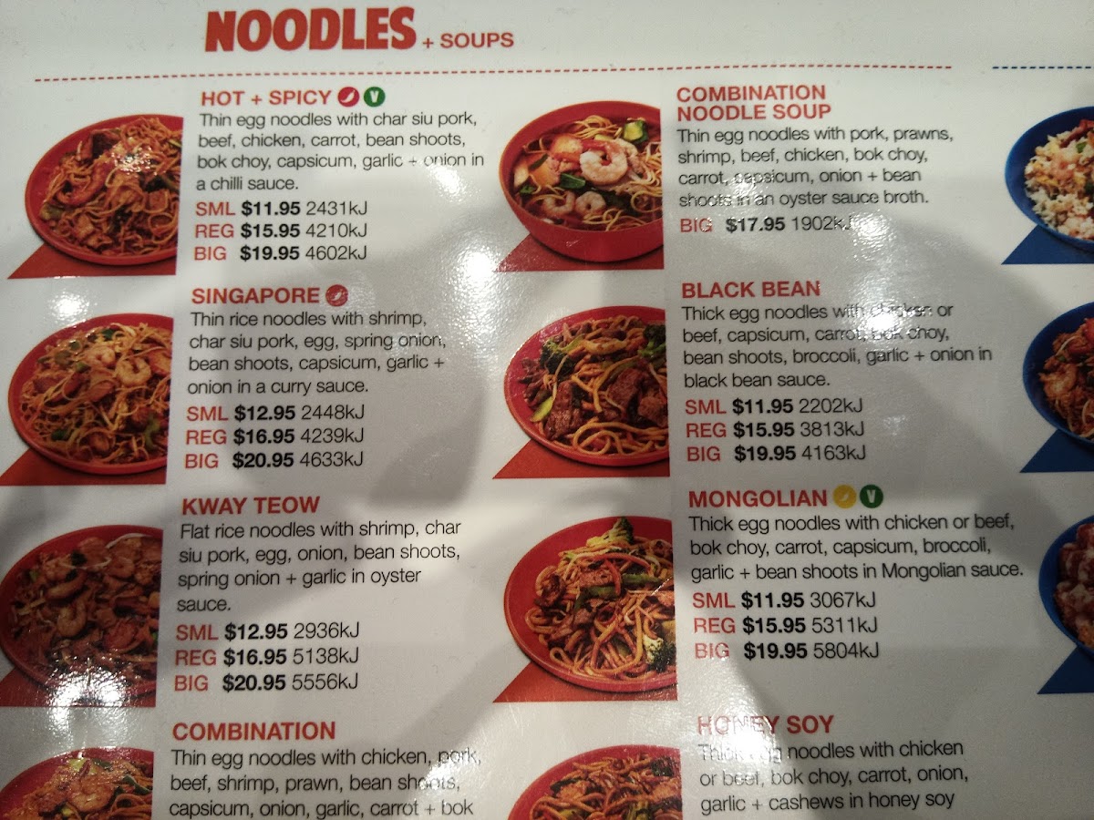 Chicken or beef with thick hokkien noodles, bean shoots, broccoli, carrot, bok choy, capsicum, onion and garlic in peppery Mongolian sauce.